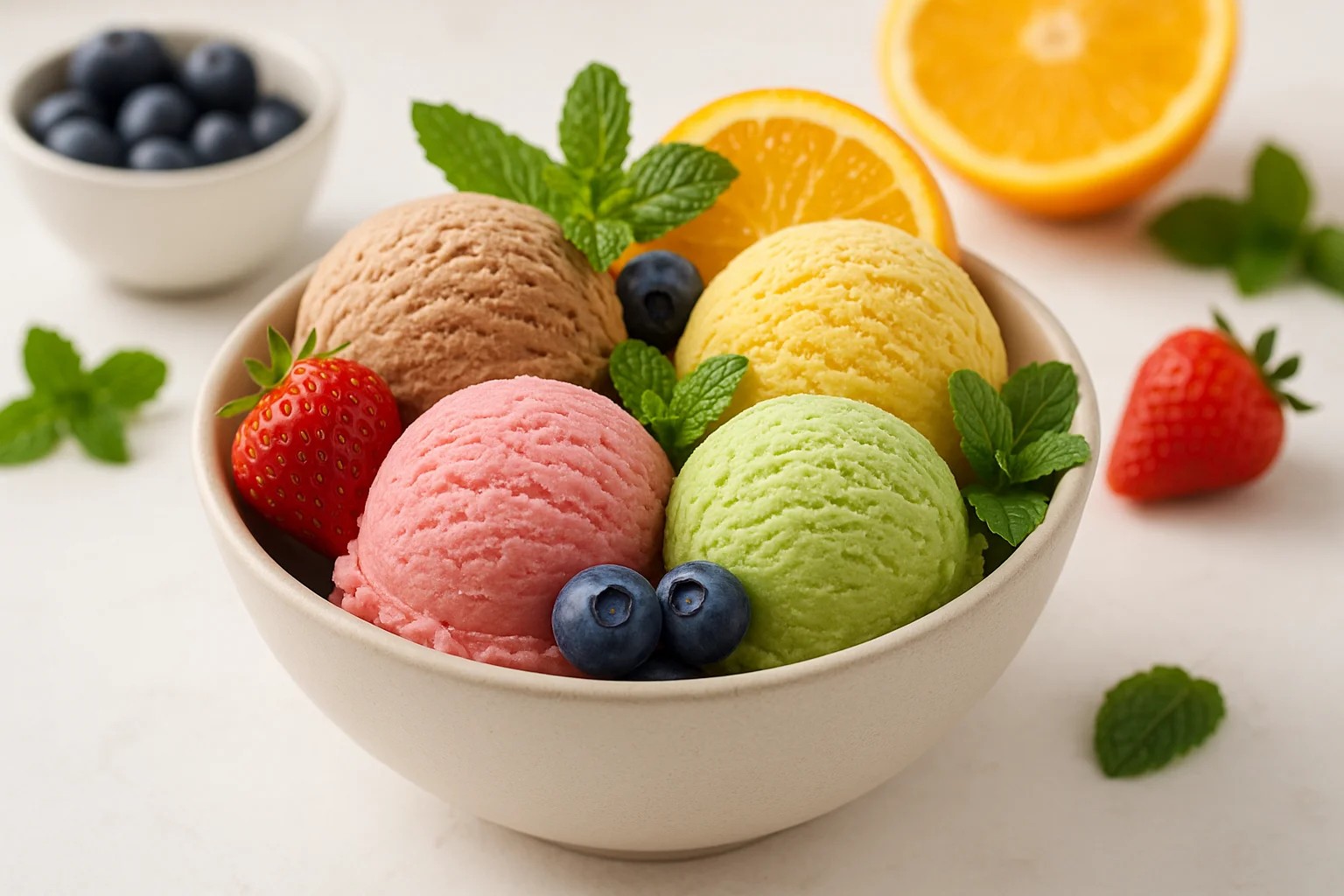 Dieses Foto von bunter veganer Eiscreme ist perfekt für Websites, Blogs und soziale Medien. Es eignet sich für Inhalte zum Thema gesunder Lebensstil.