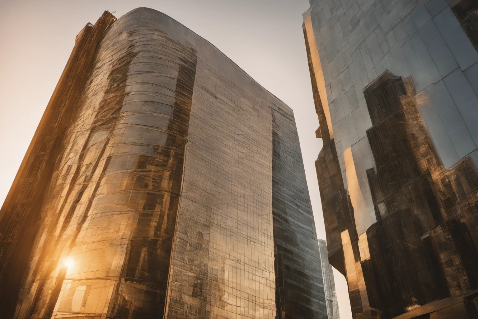 Professional image showcasing a sleek, modern skyscraper with angular lines and reflective glass panels. Perfect for highlighting architectural innovation in urban settings. Usage: corporate brochures, cityscape presentations, real estate websites.
