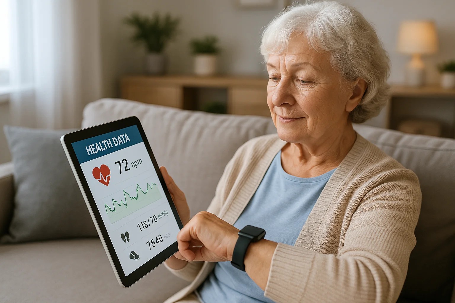 Cette image est parfaite pour les sites web, blogs et réseaux sociaux. Adaptée au contenu axé sur la surveillance à distance des patients et le soin des personnes âgées.