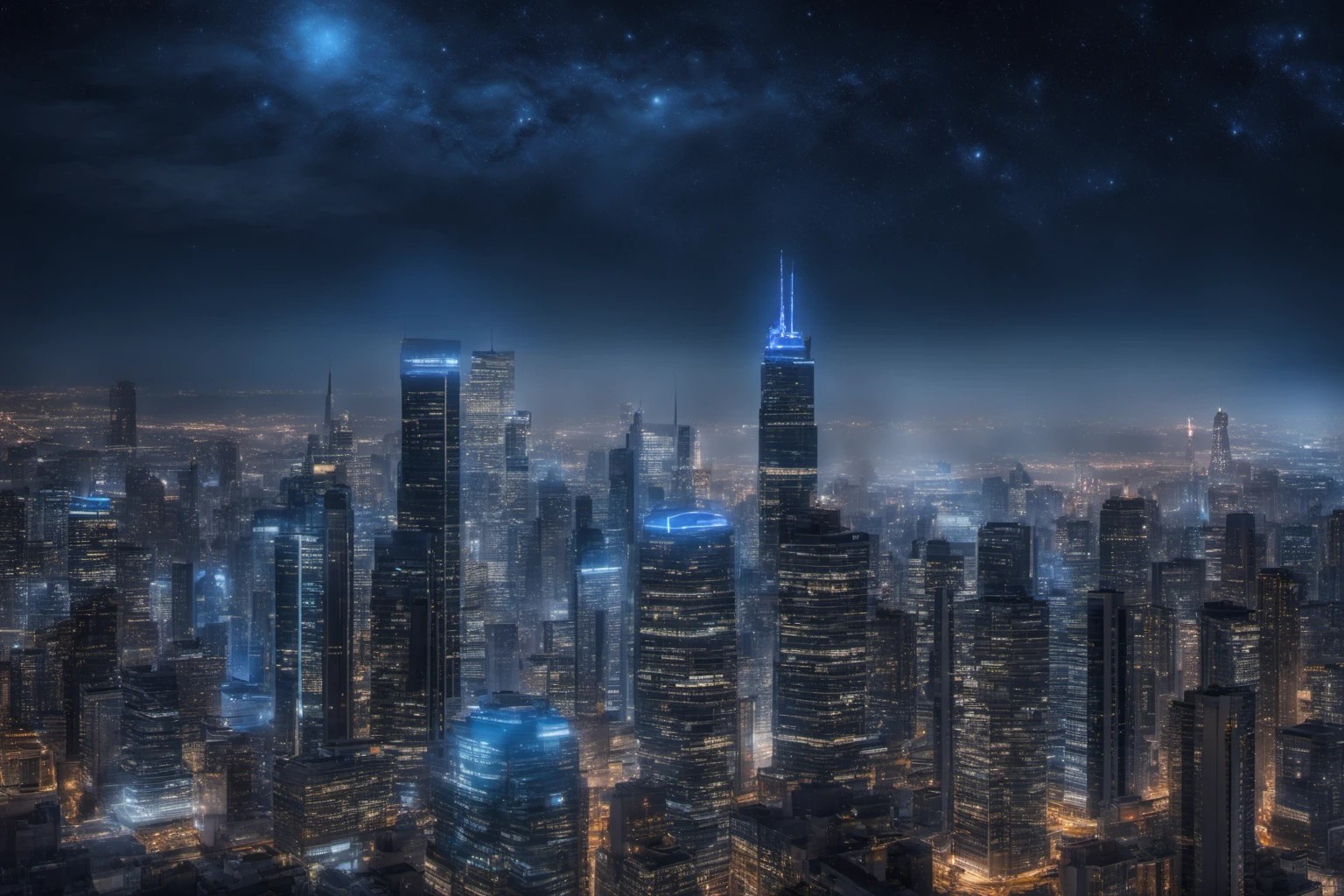Vue nocturne de la skyline urbaine – Paysages urbains nocturnes