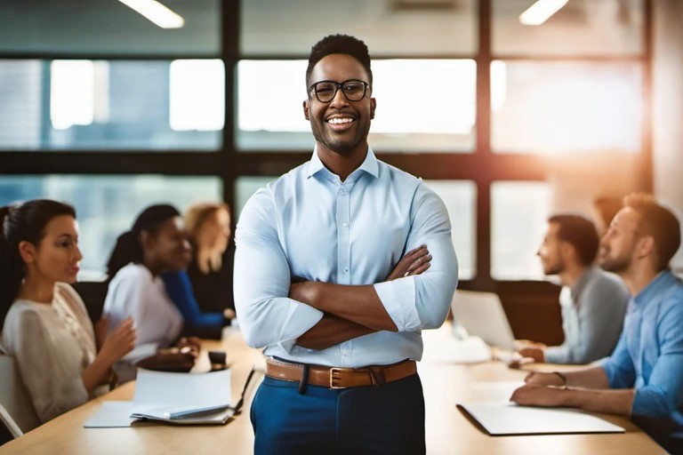 Fotografi profesional dari seorang enterpreneur percaya diri saat mempresentasikan ide startupnya kepada panel, dengan pencahayaan terfokus dan komposisi dinamis. Ideal untuk presentasi bisnis dan kampanye pemasaran korporat. Usage: situs web perusahaan, bahan pemasaran, presentasi konferensi.