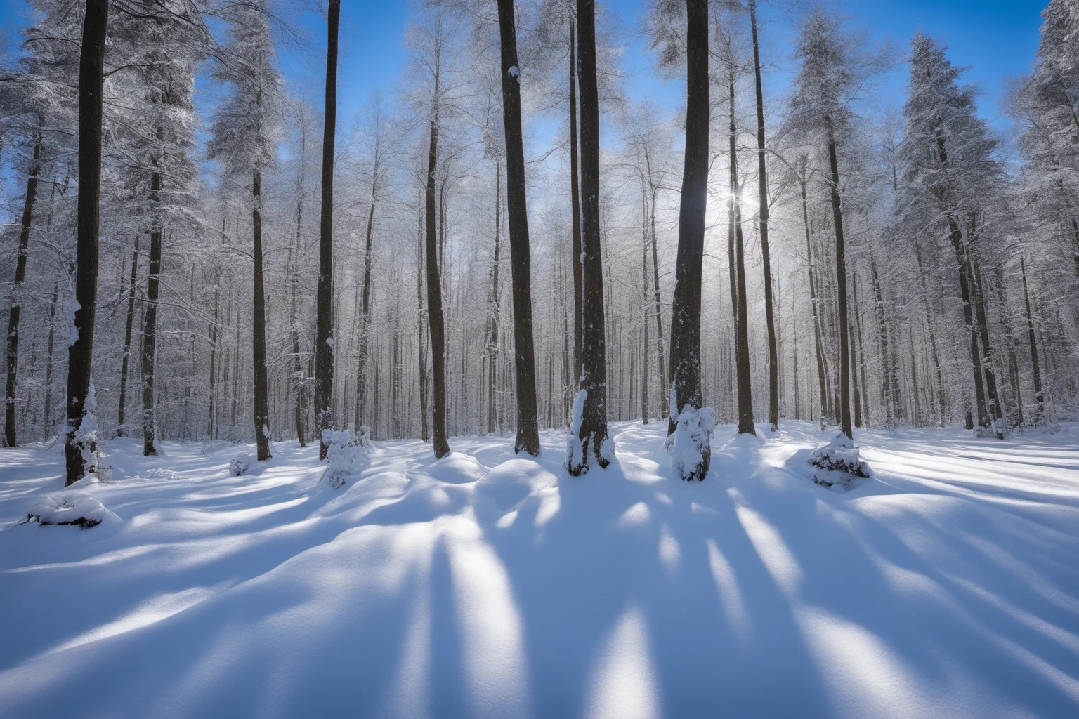 密林を覆う雪景色のプロフェッショナルな撮影。冬らしい静寂と美しさが詰まっています。