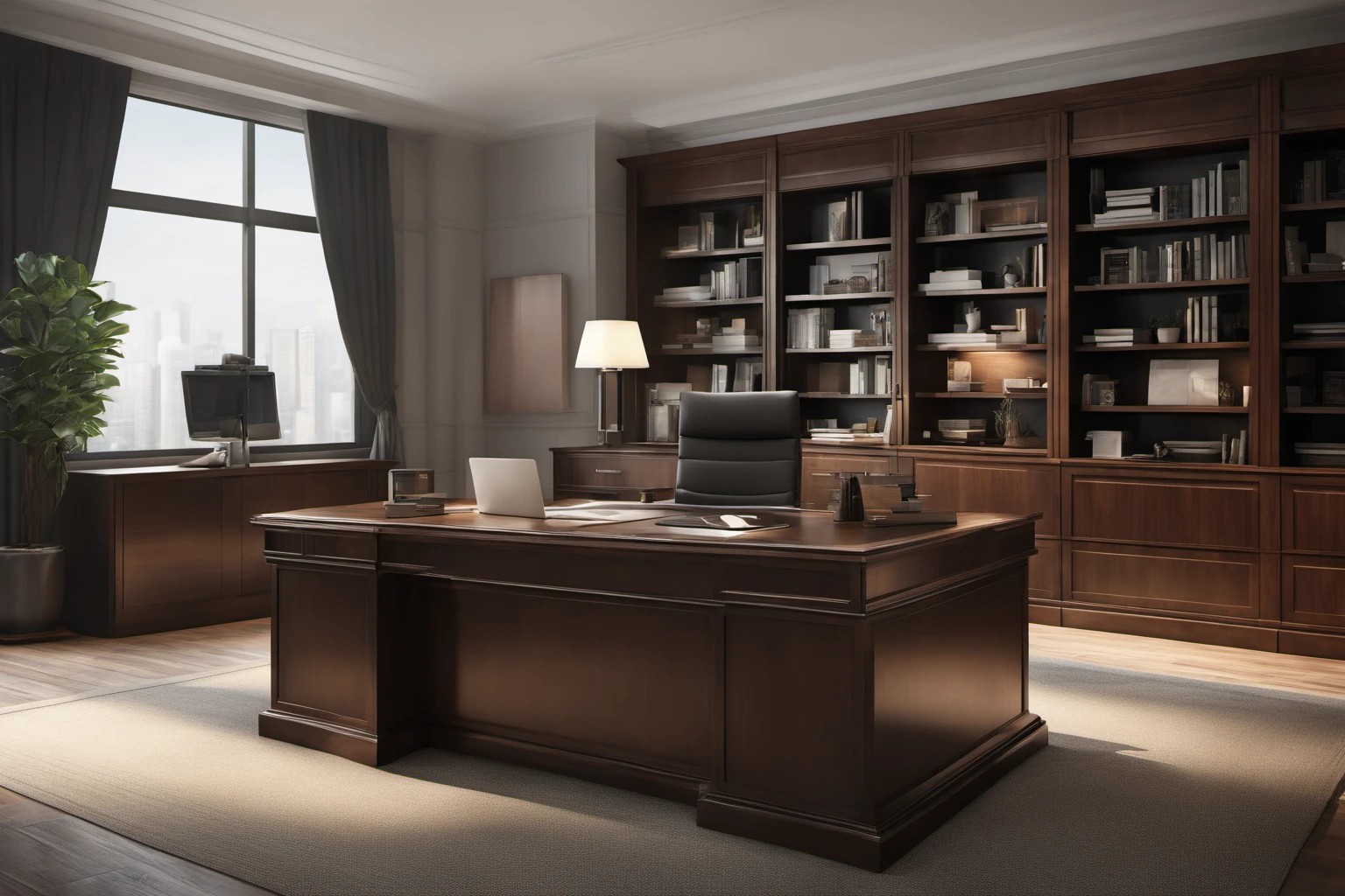 Imagem profissional de alta resolução de uma sala executiva moderna com móveis elegantes e superfícies polidas. Ideal para apresentações corporativas e portfólios empresariais. Usage: sites corporativos, relatórios de negócios, materiais de marketing.
