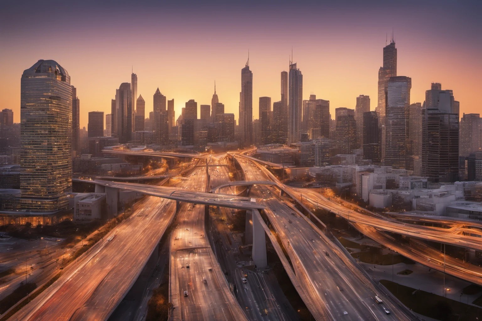 Профессиональное изображение современного моста с выразительными линиями и яркими цветами, идеально для демонстрации инфраструктуры и динамичных городских пейзажей. Использование: рекламные кампании, портфолио архитекторов, журналы о городской жизни.