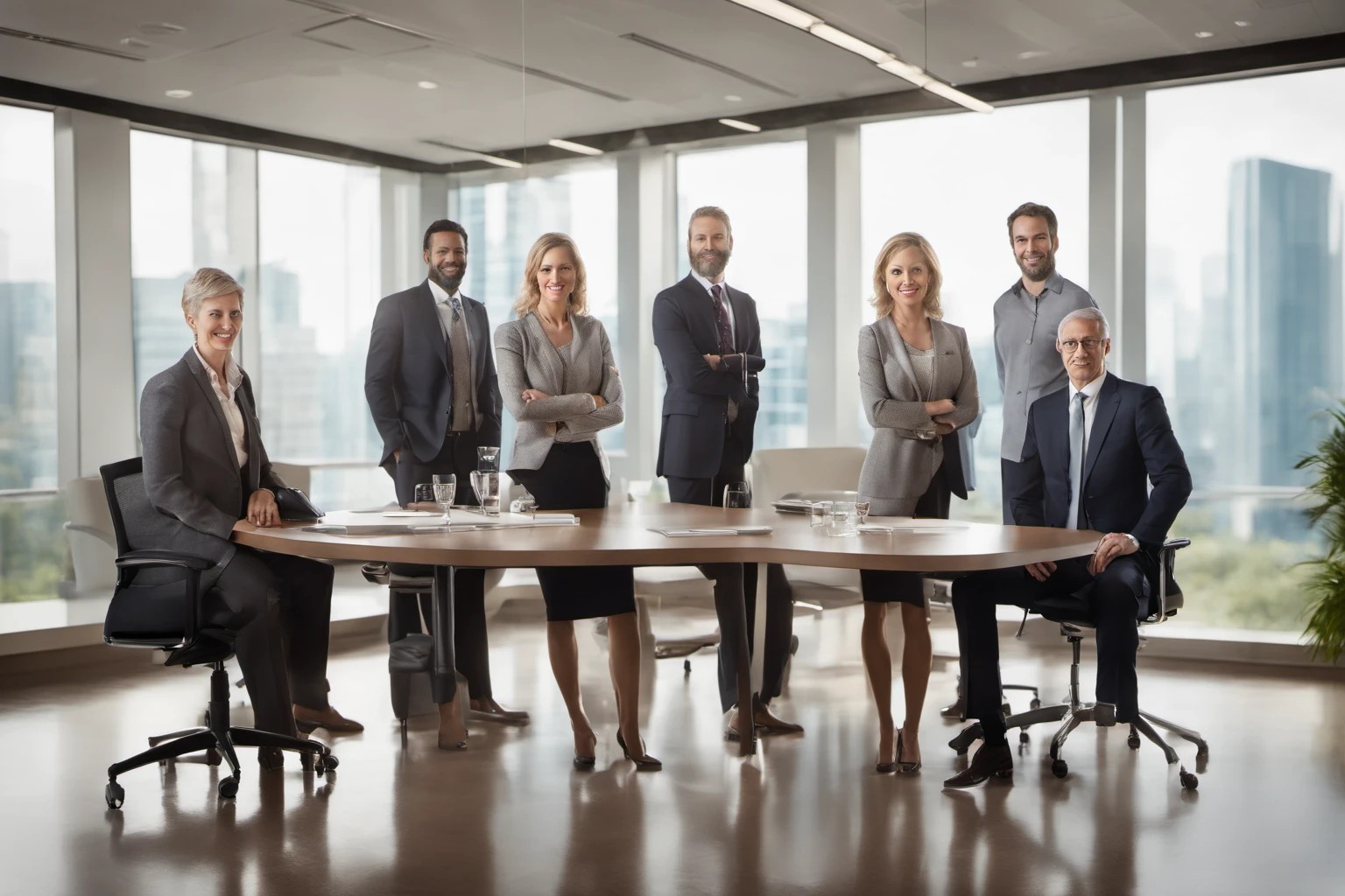 Profesyonel kurumsal takım fotoğrafları, çeşitli arka planlar, çekici gülüşler ve modern giyim tarzıyla birlikte. Kullanım: web referansları, broşürler, pazarlık sunumları.